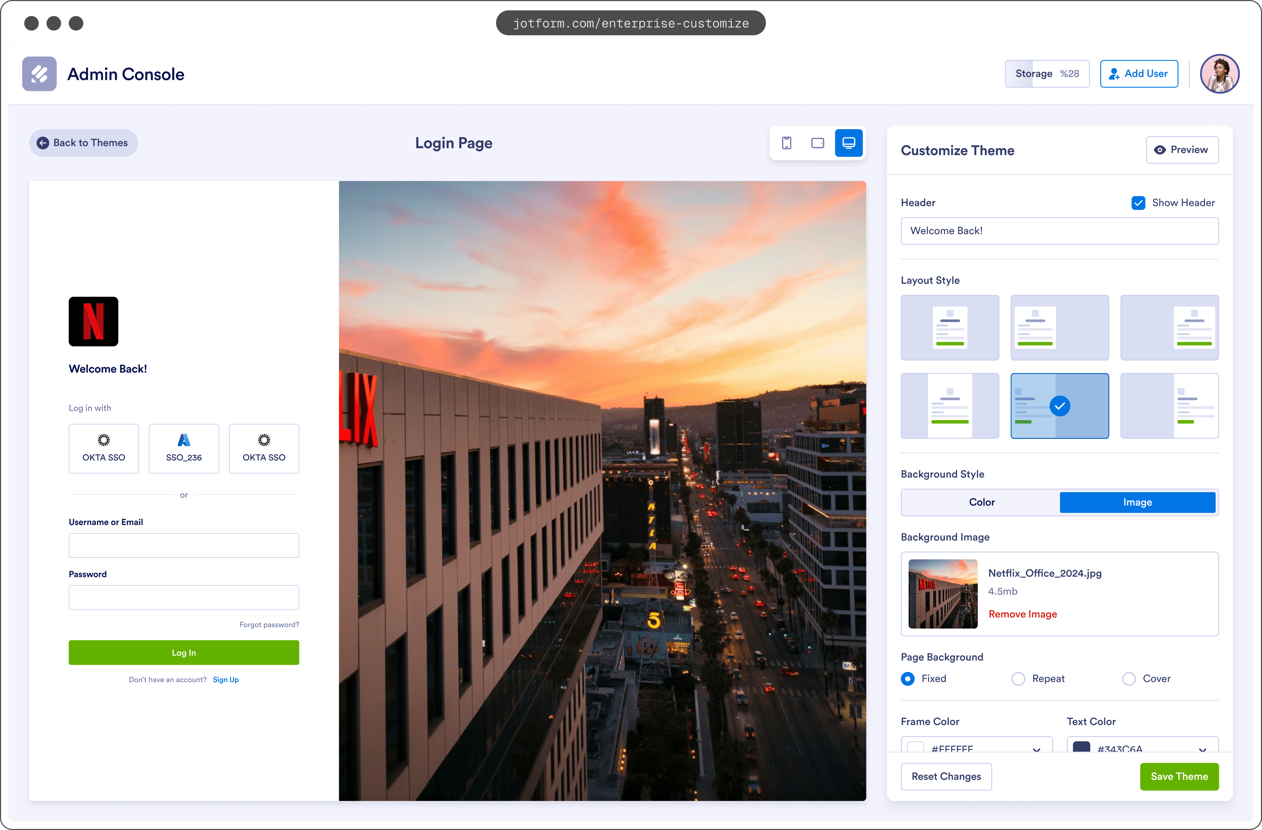 Provides enterprise users with a secure and seamless login experience, featuring single sign-on (SSO) integration, custom branding, and robust access controls to ensure effortless and secure management of organizational accounts.