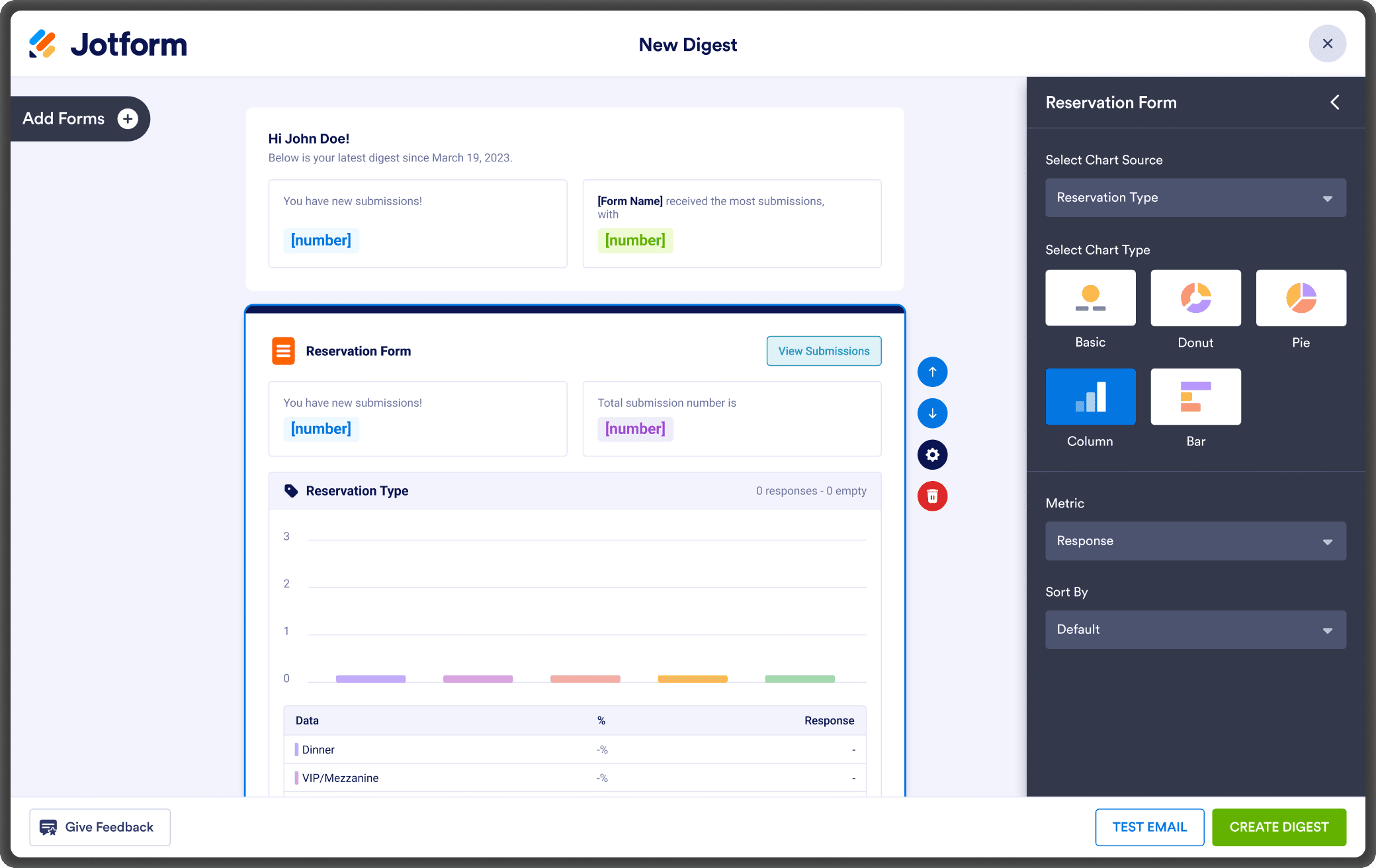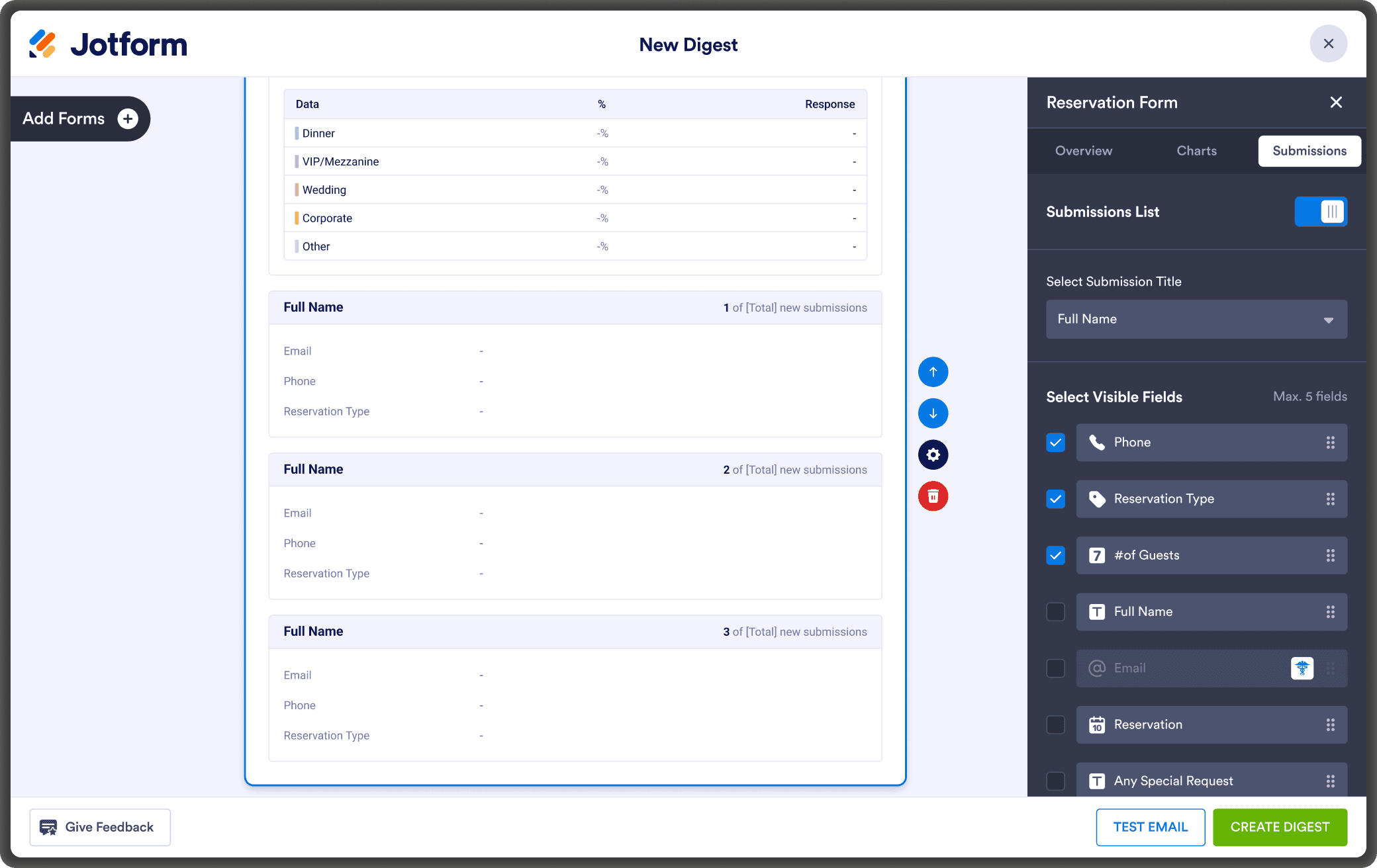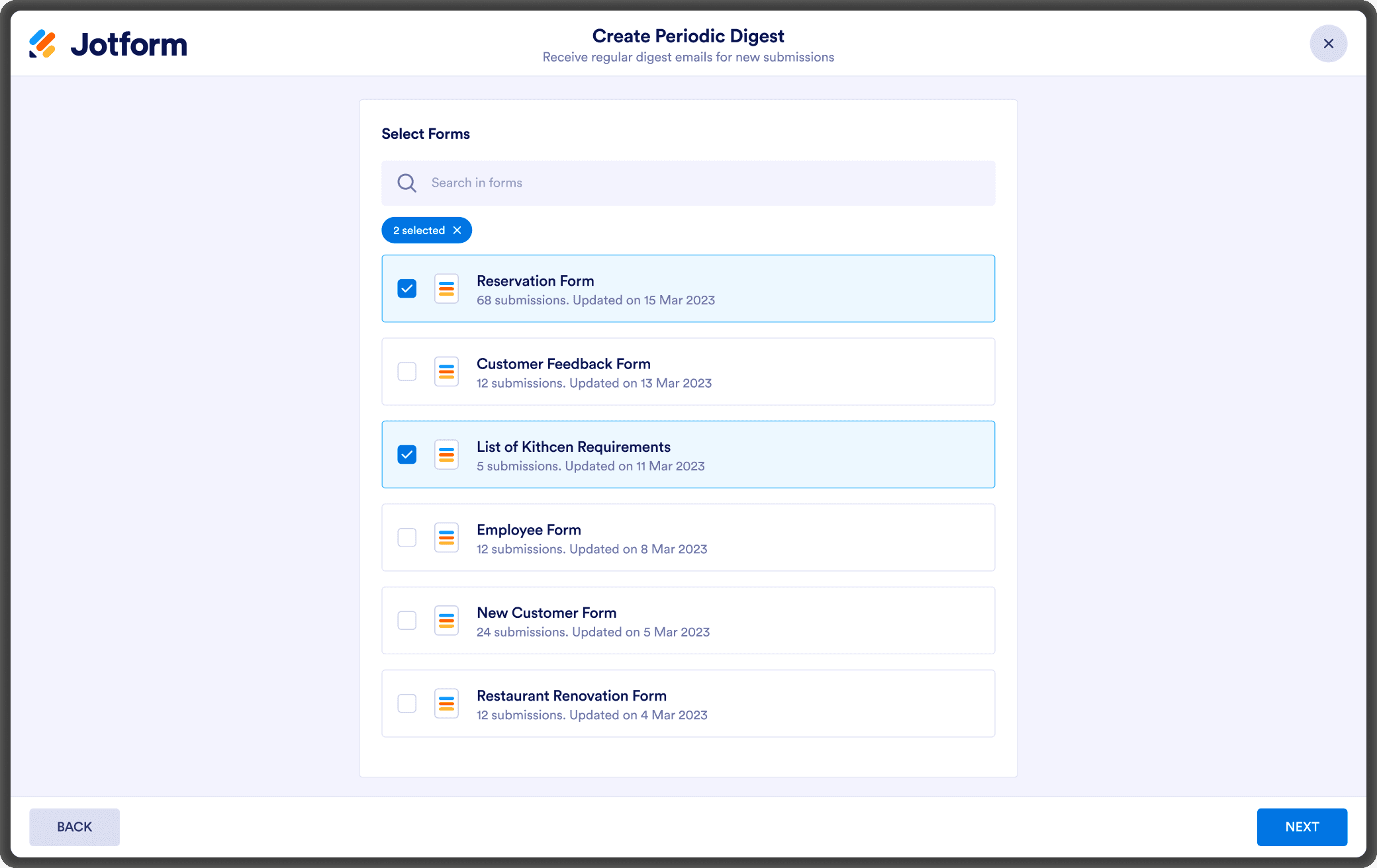 First introduced in 2018, Jotform Digest Emails allows users to receive a summary of their form submissions at chosen intervals—daily, weekly, or monthly. While form notifications provided real-time updates, frequent submissions often led to notification overload, making it difficult for users to track their data efficiently.